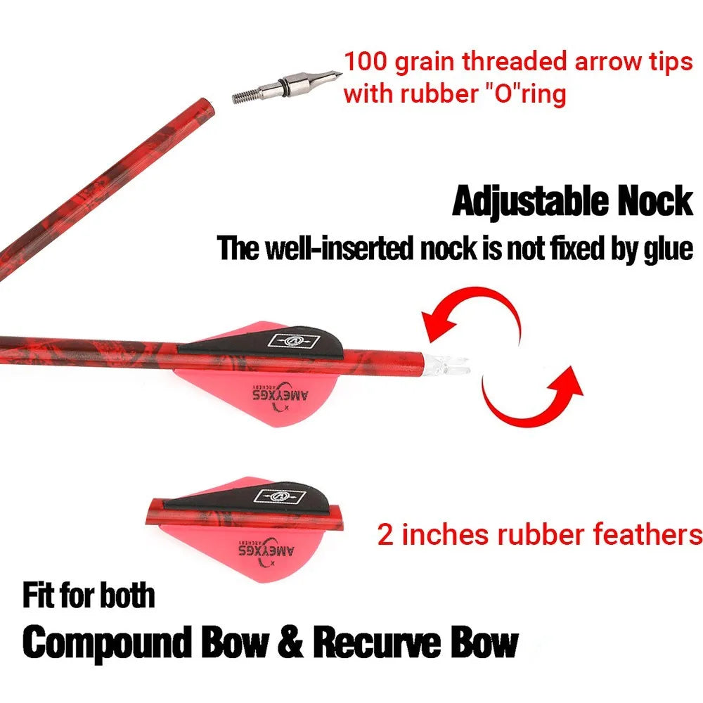 12X 30" Archery Carbon Arrows SP500 Screw Arrowhead Vanes Shooting Hunting Recurve Compound Bow Hunting Target Practice