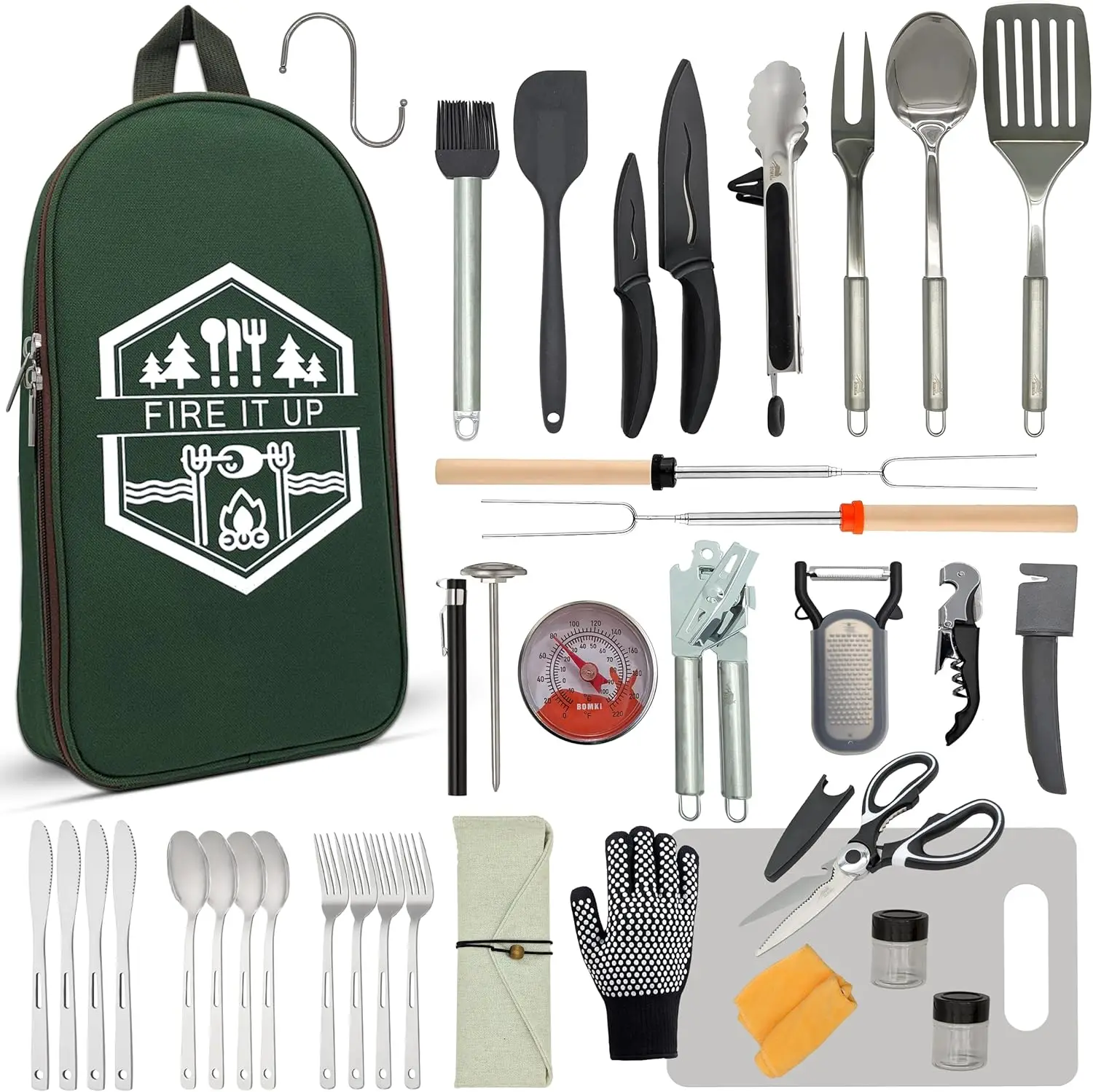 35-Piece Outdoor Cooking Utensil Set - Stainless Steel BBQ Grill Tools for Camping, Picnics & Glamping