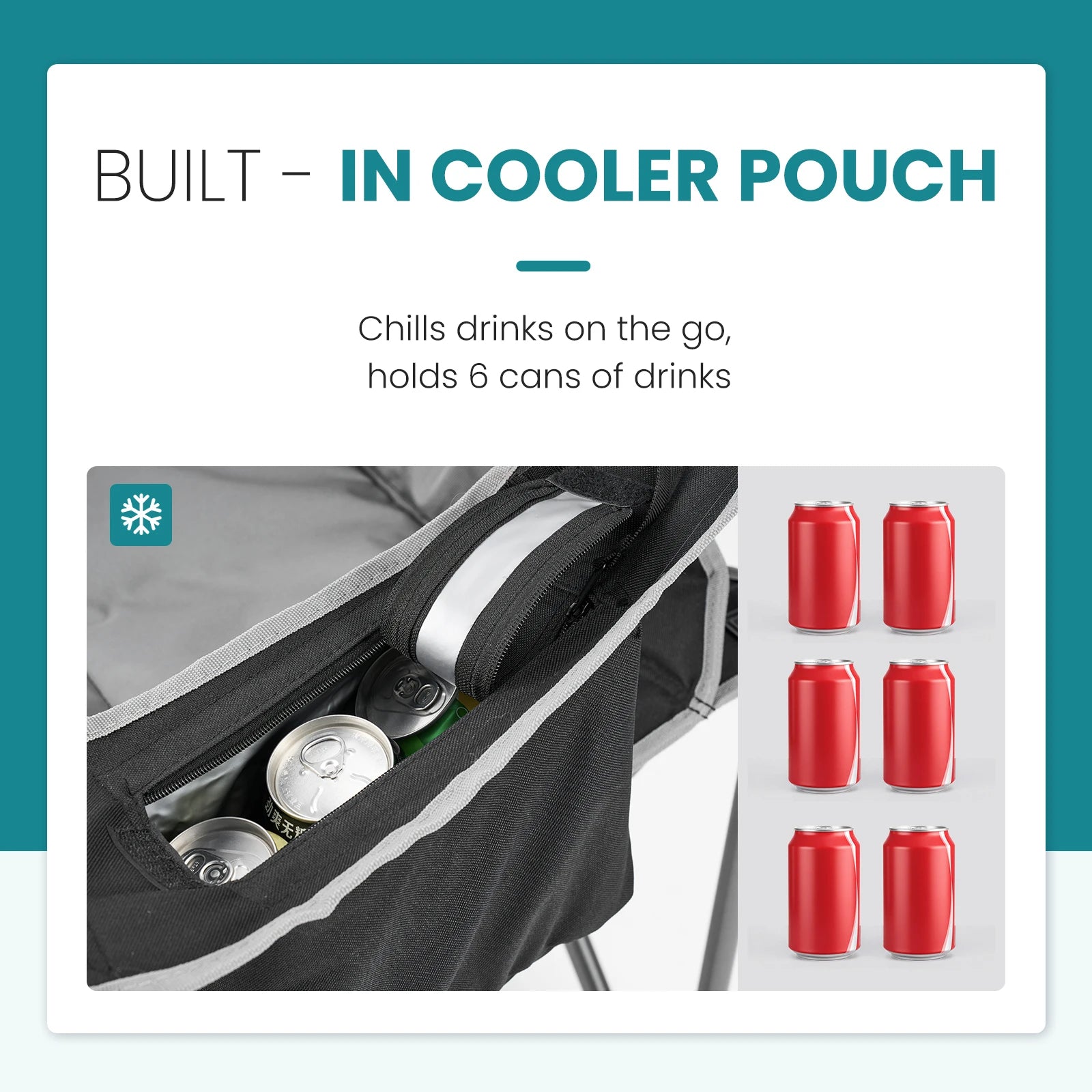 【Smart Storage Solutions】Stay organized outdoors!This folding chair includes a mesh cup holder,side pocket for phones/keys, a cooler bag for drinks, and a back storage pouch for essentials. Perfect for keeping snacks,maps or sunscreen handy during beach trips or camping!