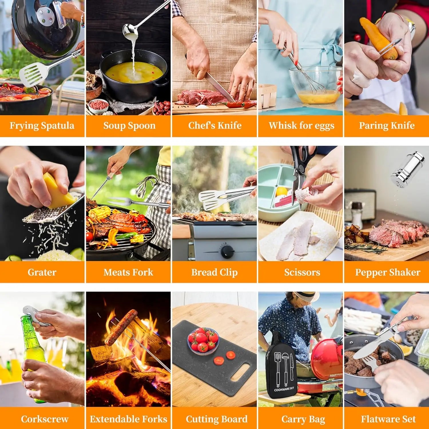 Stainless Steel Camping Cooking Utensils Set, Portable BBQ Grill Tools for Travel Picnic RV