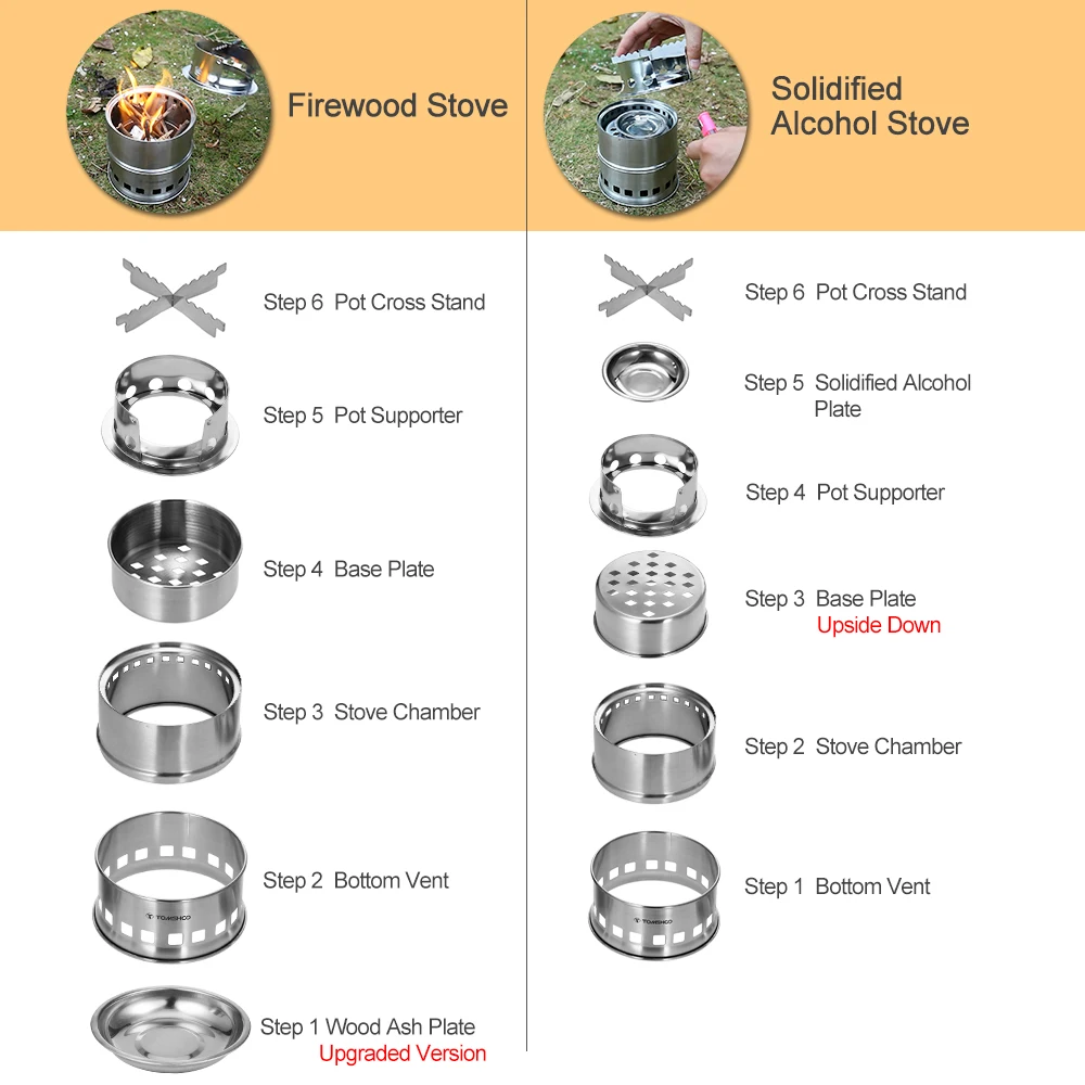 Tomshoo Upgrade Camping Backpacking Stove Portable Folding Windproof Wood Burning Stove Compact Stainless Steel Alcohol Stove