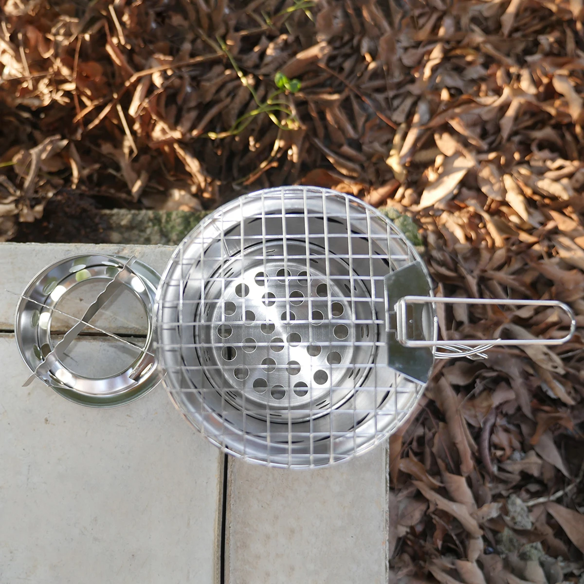 VERSATILE APPLICATION: This camping stove comes with a grill which allows you to start barbecue wherever you set up your camp. It is suitable for camping, hiking, backpacking, picnic, BBQ, outdoor survival and adventures. Note: Wood stove only, the pot and other items in the picture are not included.